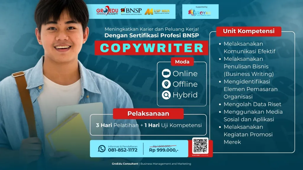 Dengan mengikuti sertifikasi dari BNSP, Anda akan belajar bagaimana menulis headline yang menarik, membangun CTA yang efektif, hingga menggabungkan teknik storytelling dengan strategi penjualan.